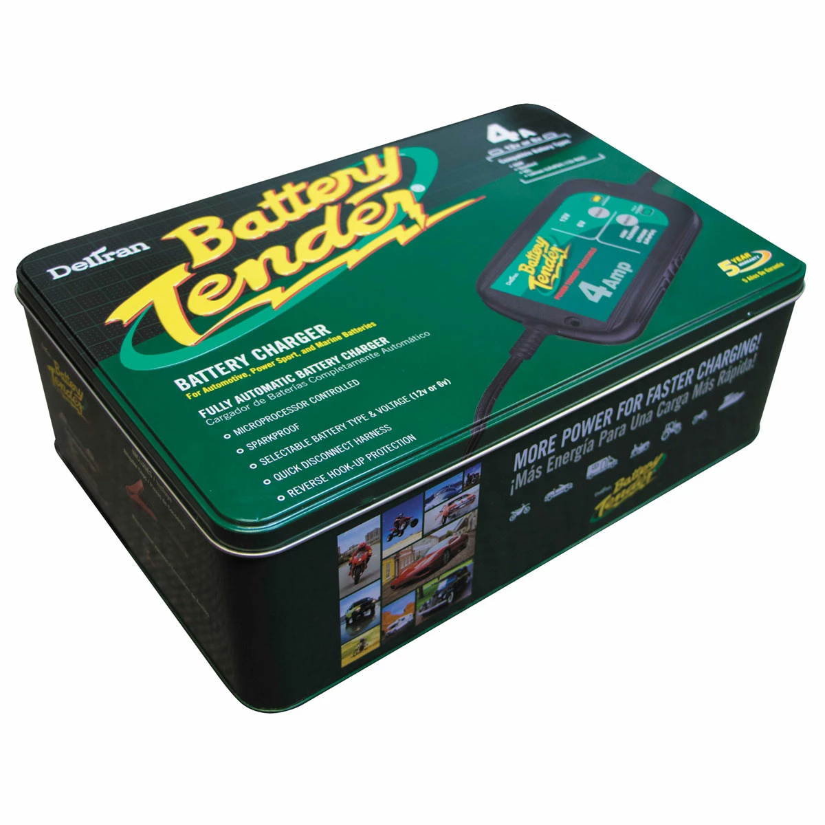 • Includes battery terminal leads, alligator clips and battery tender packaged in a tin can