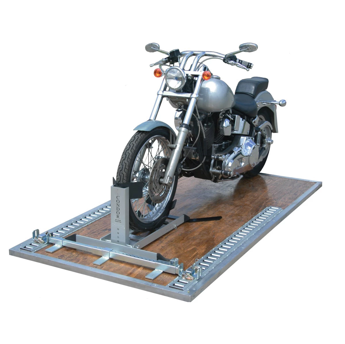 • You can adjust the position of the Condor Chock anywhere along the E-Track for maximum flexibility in positioning a motorcycle, and it will adjust side-to-side between 27″ and 46″ wide