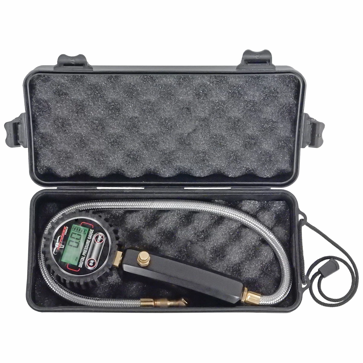• The 20″ stainless steel braided hose and a shock resistant housing boot will protect this gauge from race track mishaps while the sturdy plastic case keeps it safe within your toolbox.
