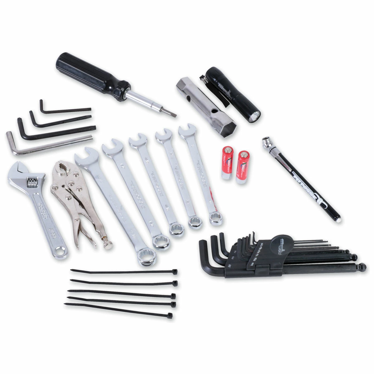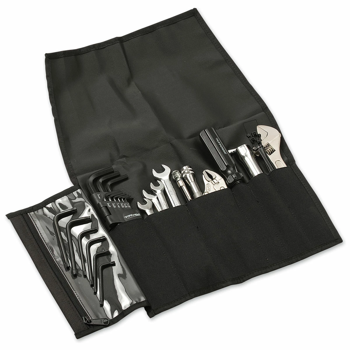 • Took kit is an array of high-quality essential tools and accessories that will handle 90% of your roadside HD/V-twin bike emergencies and maintenance work