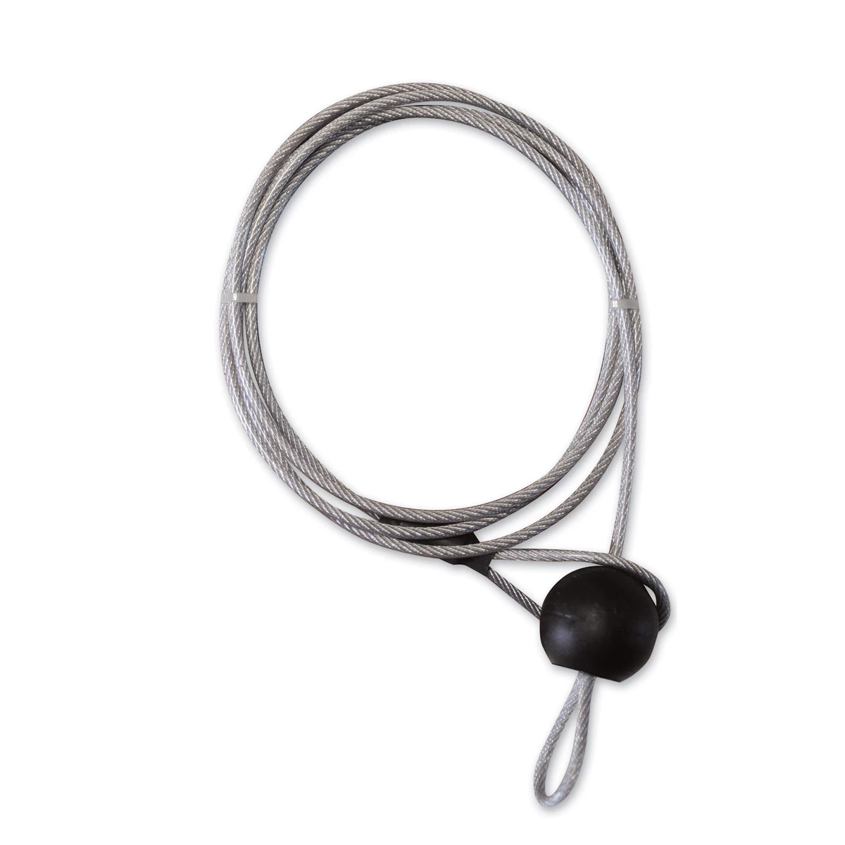 • Once your luggage and jacket are set in place, you simply thread the cable through the jacket sleeve and luggage D-ring then slip the black ball on the other end of the cable through the loop and your items are cinched!