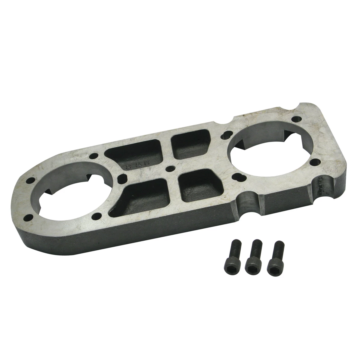 • This boring plate kit has panhead and shovelhead head bolt patterns in one end. The other end is machined with the cylinder base patterns of 1936-99 Big Twin engines, and 1986-2003 Harley-Davidson Sportster models. Spacers are available for Evolution engines which allow the cases to be bored without removing the cylinder studs.