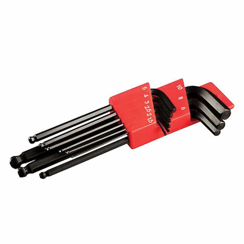 • 9-piece, metric sizing: 1.5mm, 2mm, 2.5mm, 3mm, 4mm, 5mm, 6mm, 8mm, 10mm