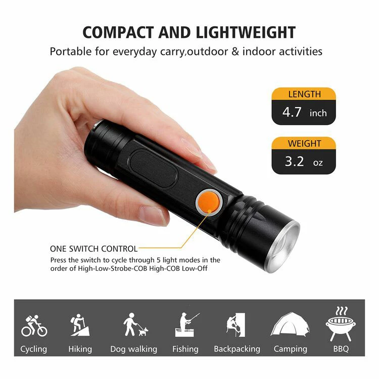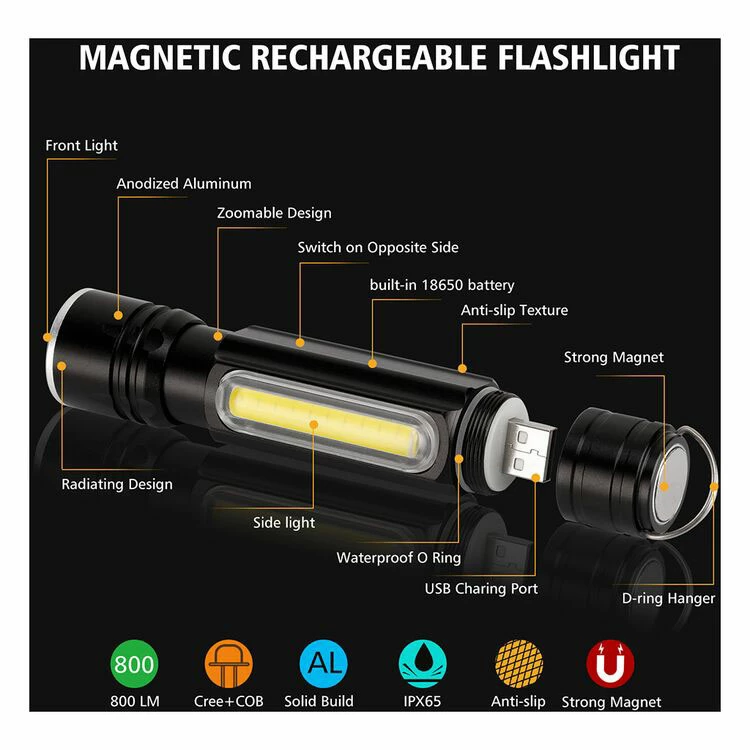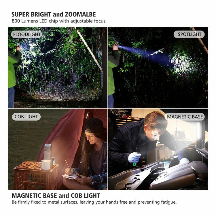 Let there be light! This compact and lightweight flashlight from Stockton was designed to come in handy whenever more light is needed. It features a bright zoomable 800 lumen LED light, a magnetic base to anchor to metal surfaces, IP65 waterproofing to resist the elements, and multiple light modes for flexibility.